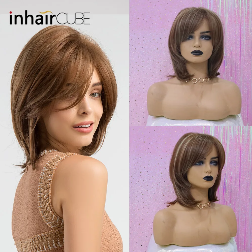 BEST QUALITY INHAIR CUBE Women Synthetic Wigs Side Parted Heat Resistant Mixed Color Straight Hair Wig Blonde Me