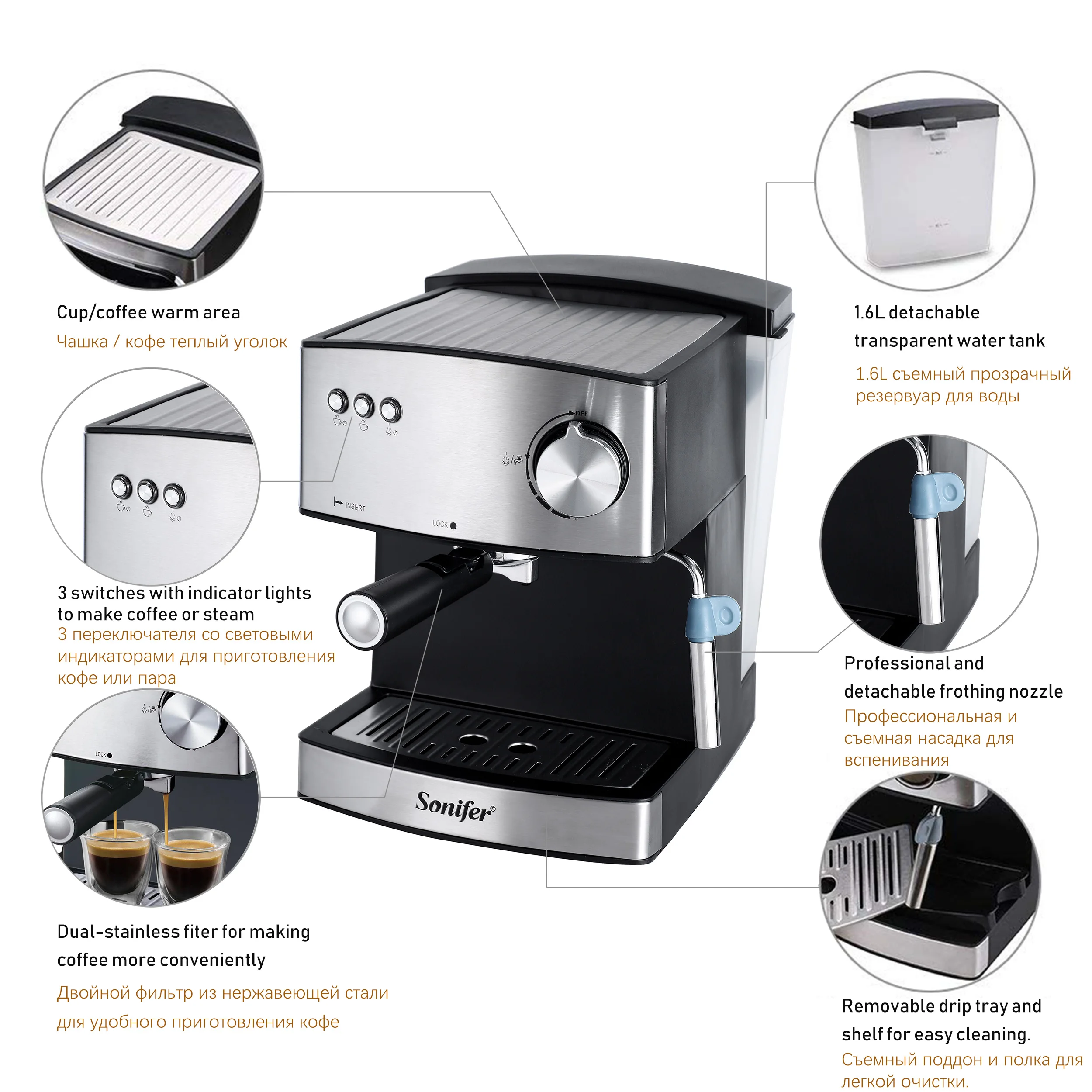 HIGH QUALITY 1.6L Espresso Electric Coffee Machine Express Electric Foam Coffee Maker Electric Milk Frother Kitc