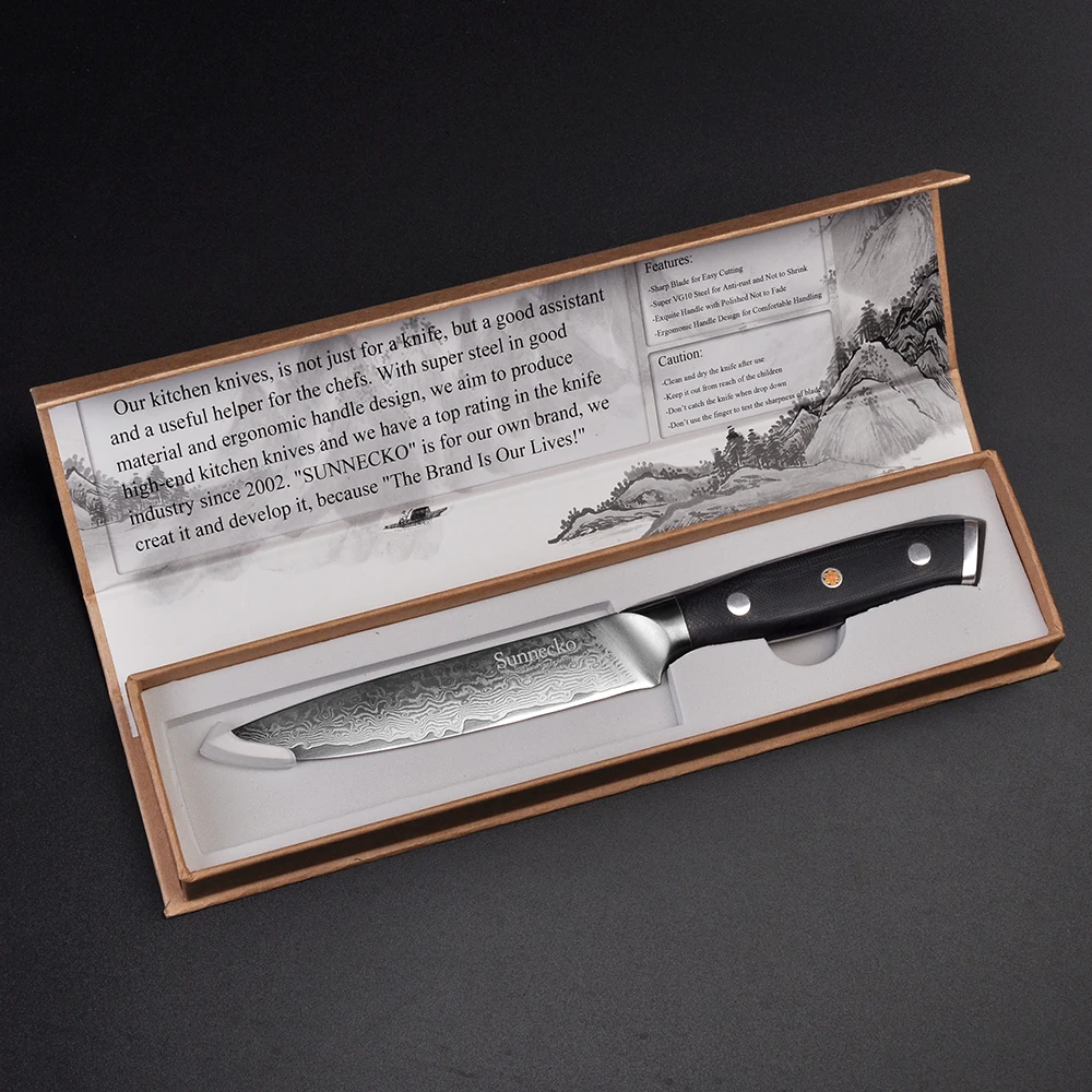 TOP SUNNECKO 5" inches Damascus Utility Knife Japanese VG10 Steel Sharp Blade Multi-purpose Kitchen Kni